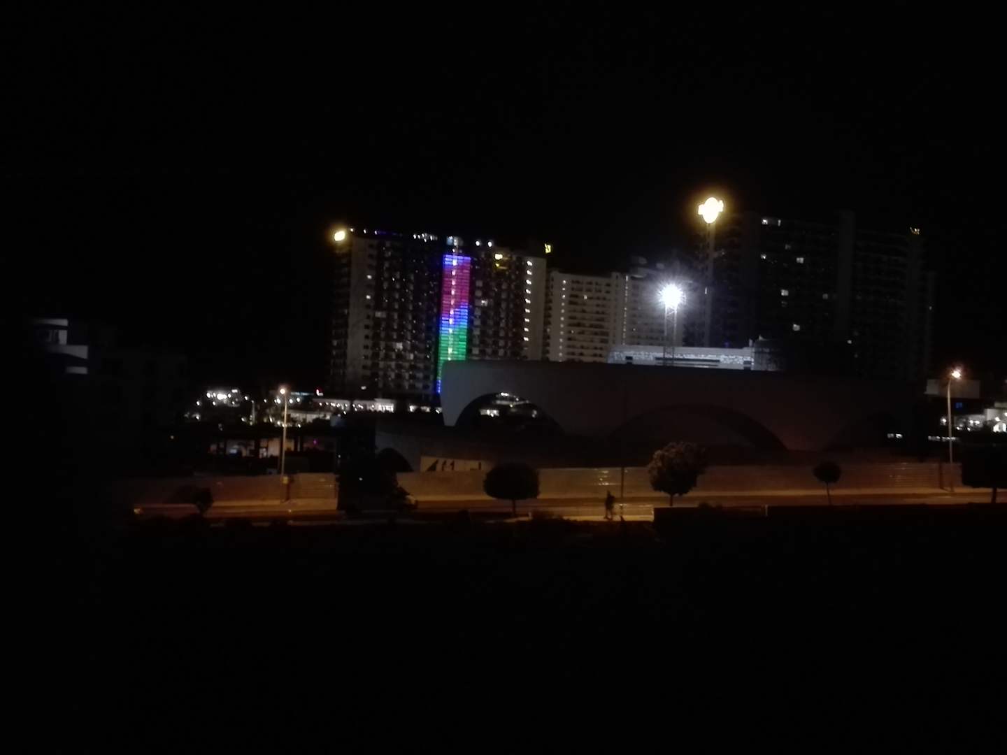 Das Hard-Rock Hotel, wenn man nachts vom Costa Adeje darauf schaut.