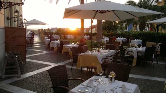 Blick auf der Terrasse des Buffetrestaurants am Abend