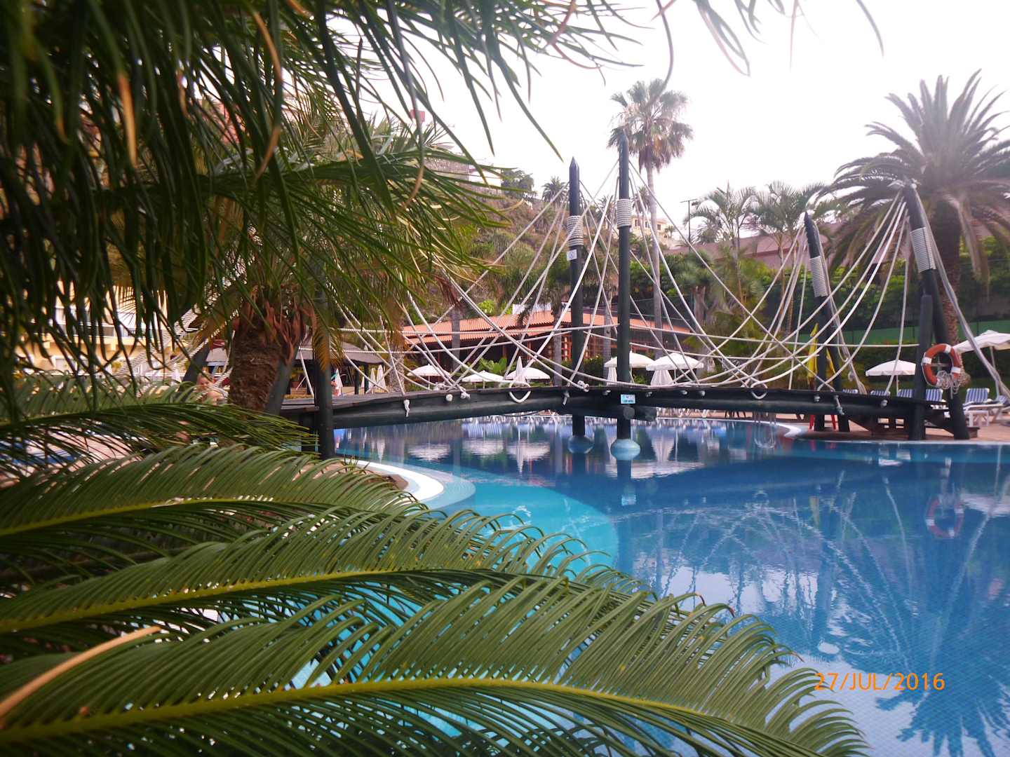 Schöne Brücke über den Pool