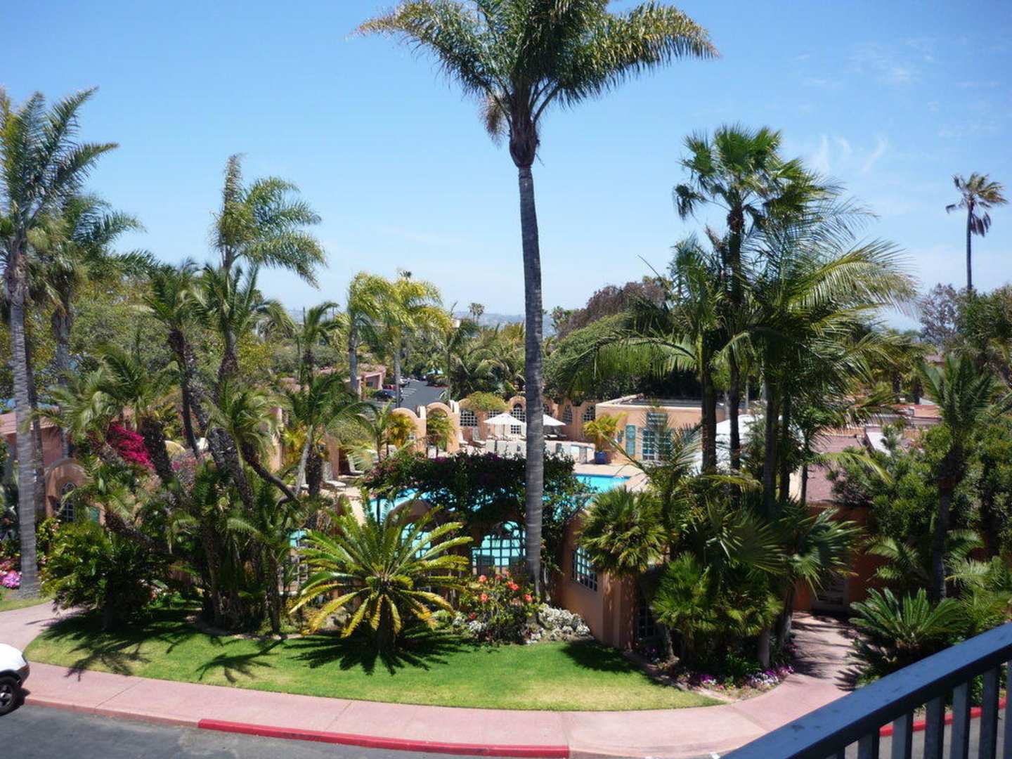 Aussicht vom Balkon auf die Poolanlage