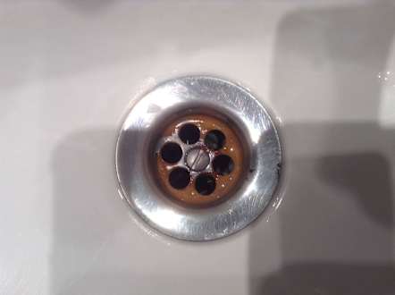 BadezimmerAbfluß Waschbecken im Badezimmer. Sehr appetitlich.