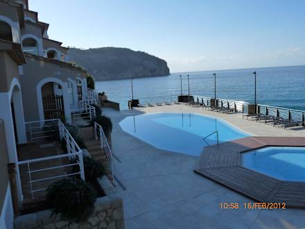 Blick vom Zimmer auf die Pools