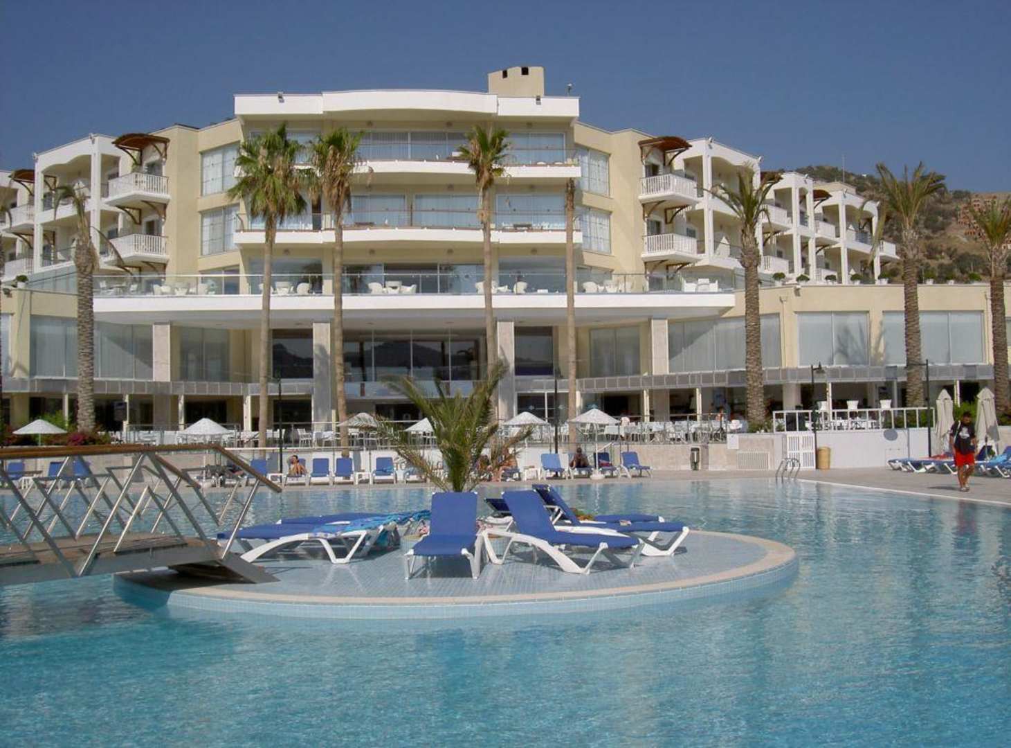 Blick über den Pool zum Hotel