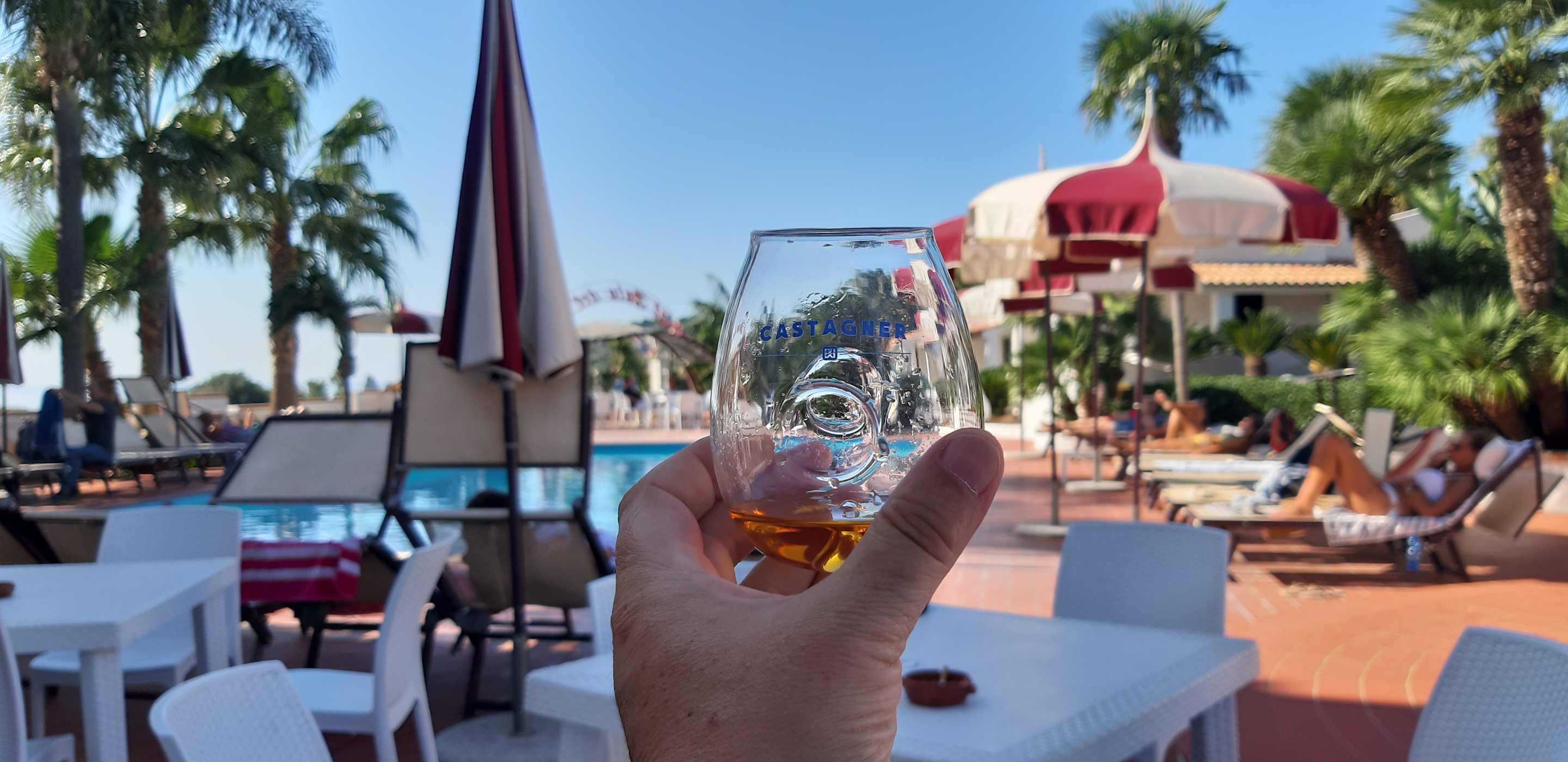 Blick von der Terrasse zum Pool
