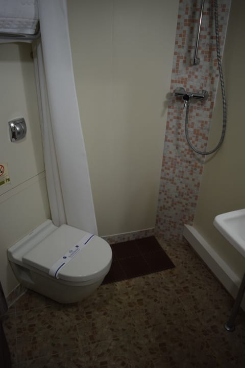 Badezimmer, winzig klein.  Bakkara Art Hotel