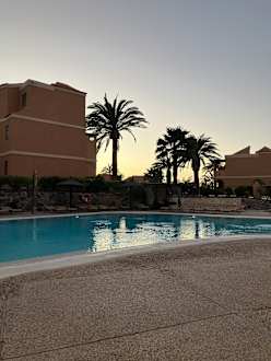 Die Sonne geht direkt hinter dem Hotel am nahegelegenen Strand unter. Es war aber ich einfach schön, am Pool im Sofa zu sitzen und die Ruhe zu genießen. Der Pool wechselte ständig das Licht-tolle Atmosphäre.