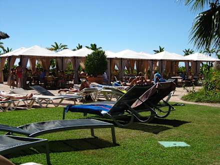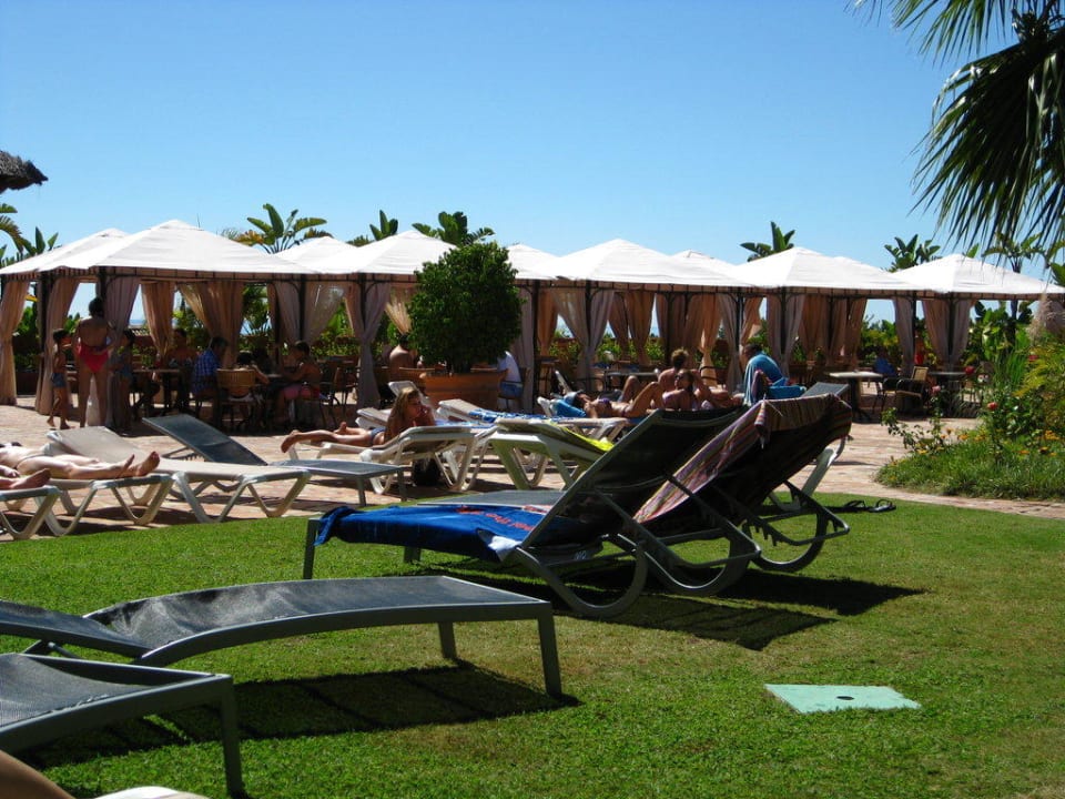 Blick auf die Außenbar mit Sitzgelegenheiten