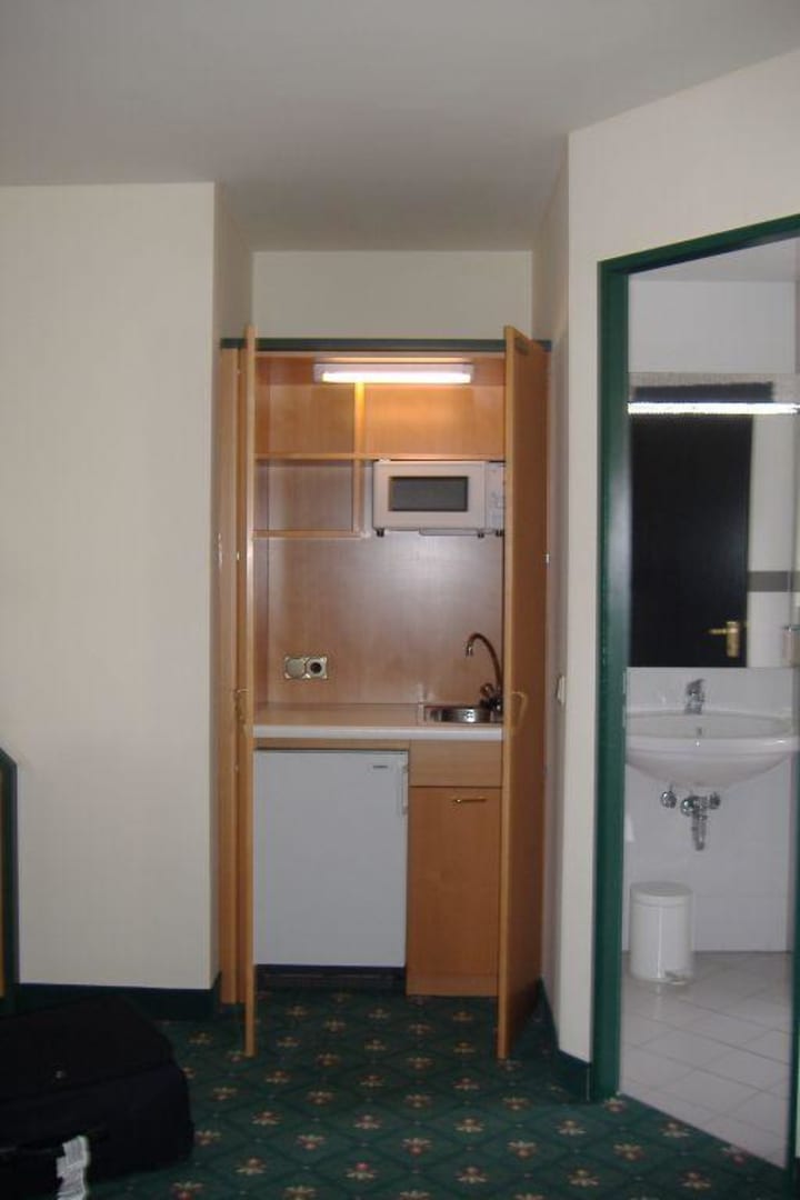 mit Kühlschrank und Mikrowelle