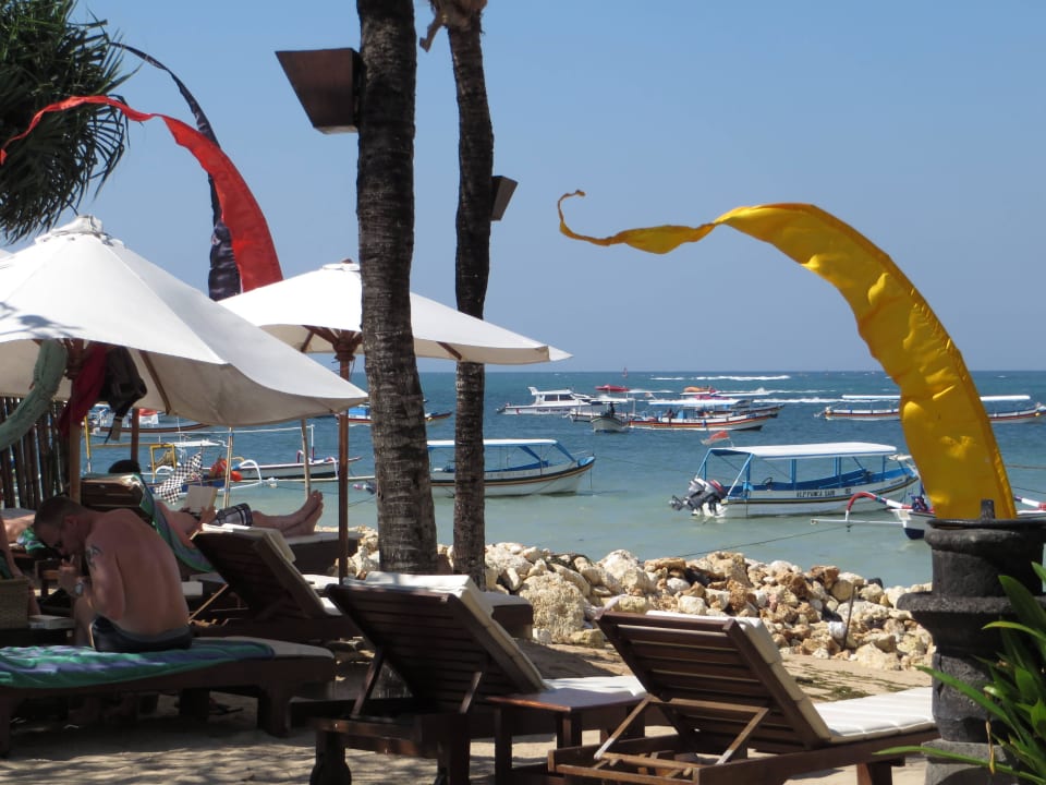 Blick zur "Wassersportmeile" Bali Reef Resort