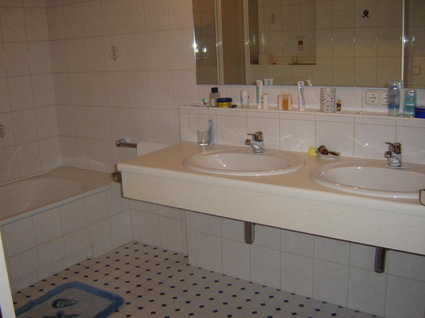 één van de twee badkamers met bad en douche