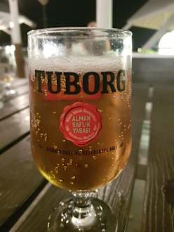 GastroAusnahmsweise mal kein Efes Bier im Ausschank, hier gab es ausschließlich das dänische Tuborg Bier