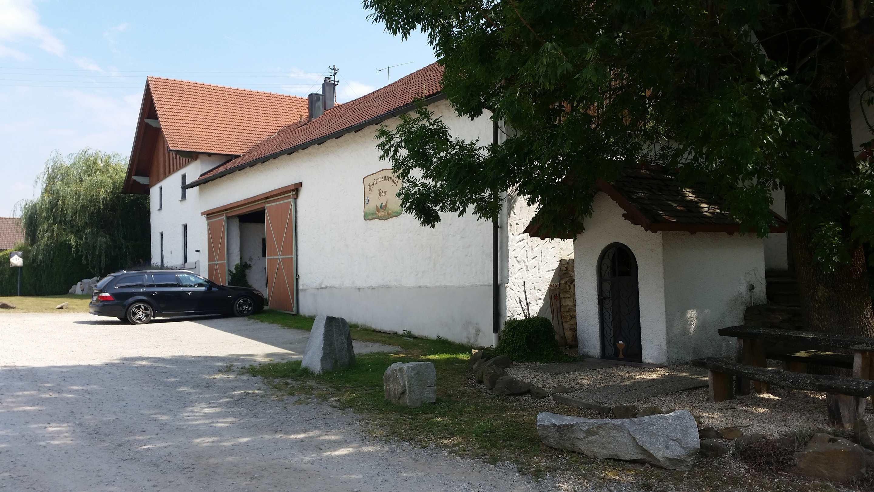 Der Hof von vorn. Rechts das Kapellchen.