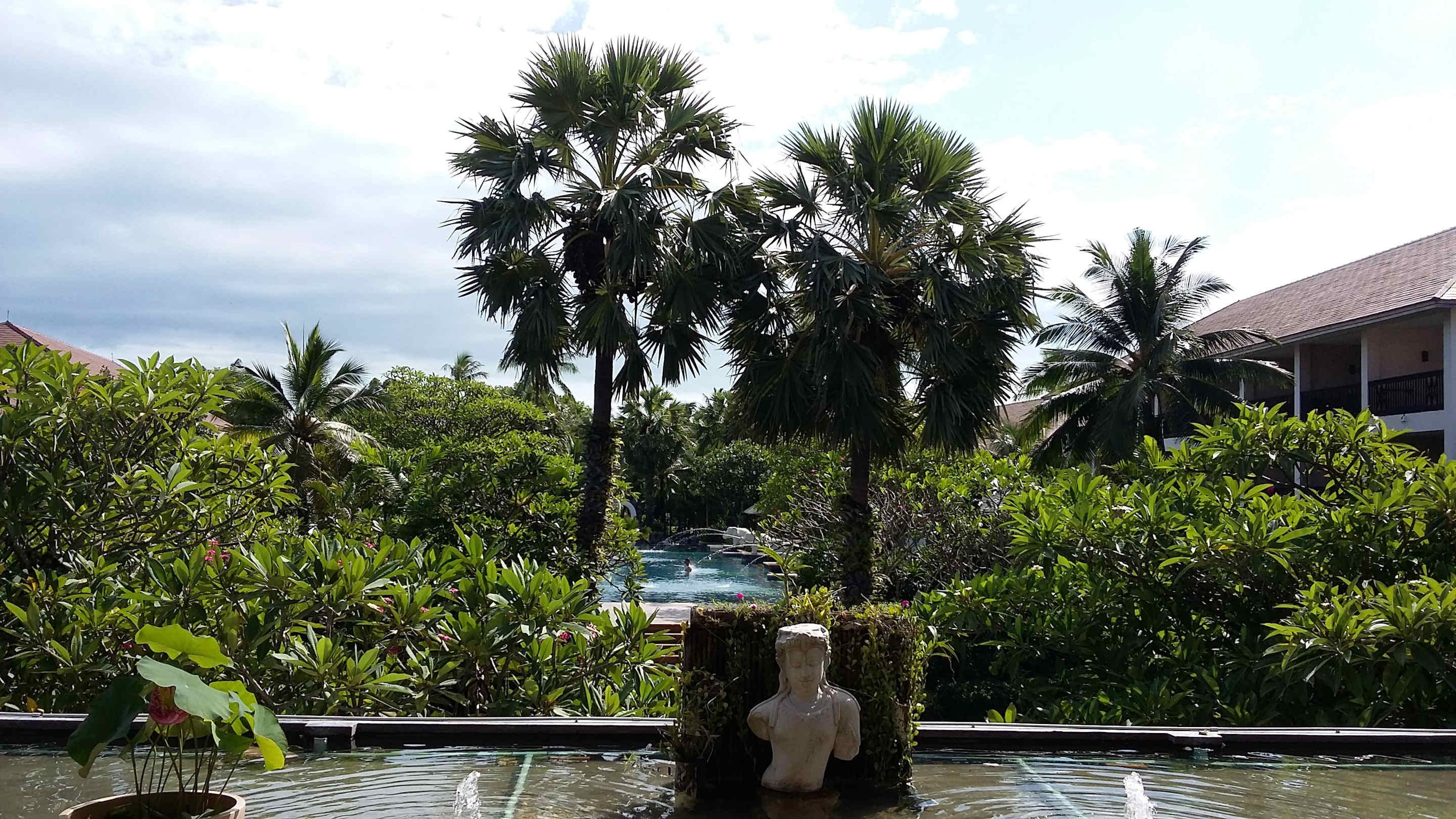 Blick aus der Lobby über die Poolanlage