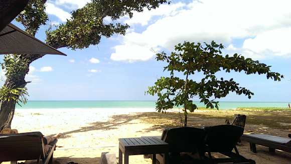 Ausblick von Hotelliege zum Strand