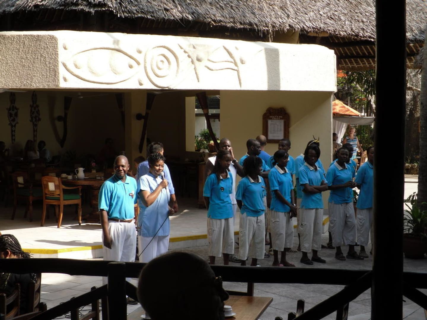 Animation beim Morgengesang im Restaurant