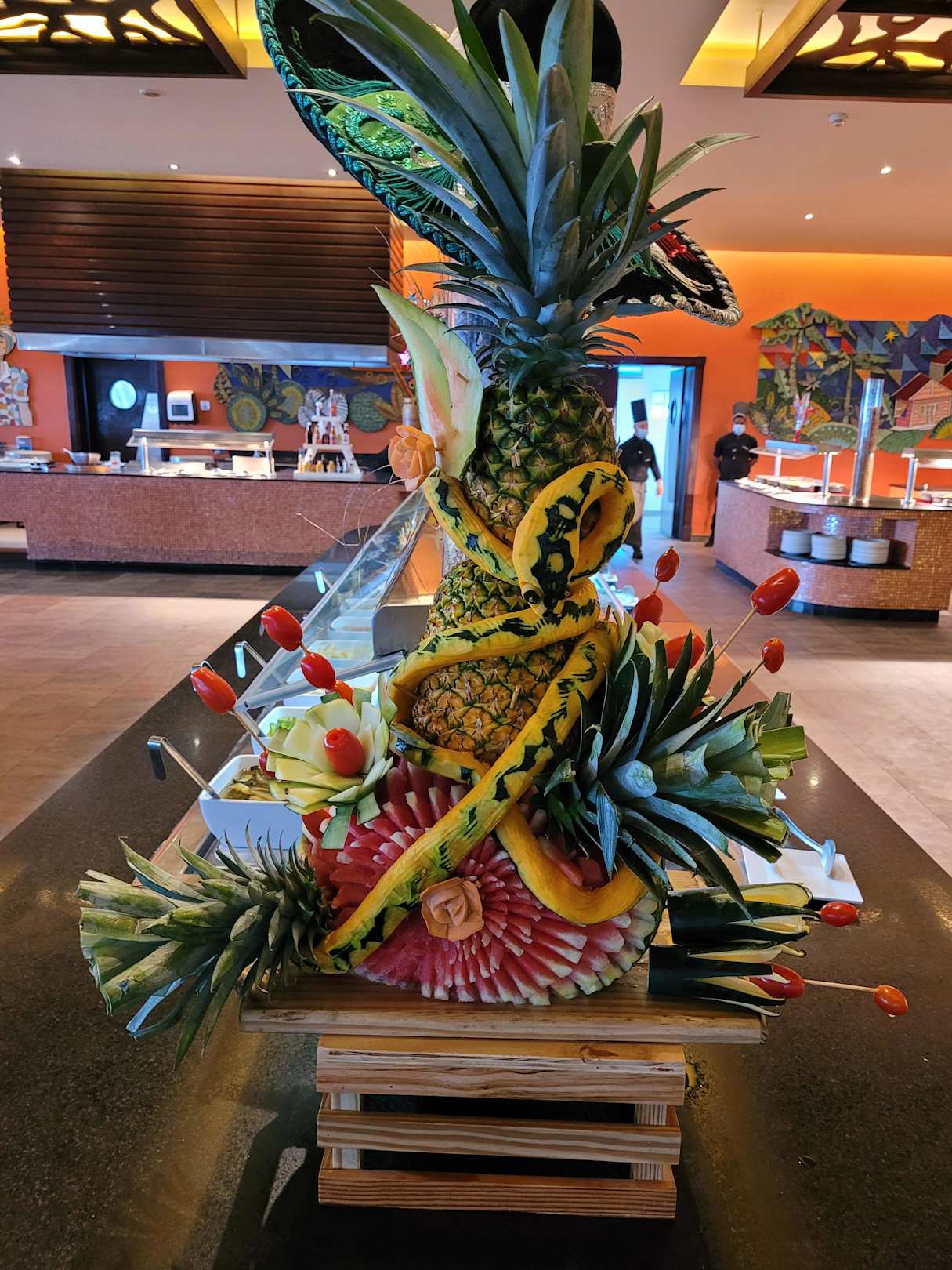 Mehrmals täglich gibt es im Caribe Kunst aus Essen zu bewundern