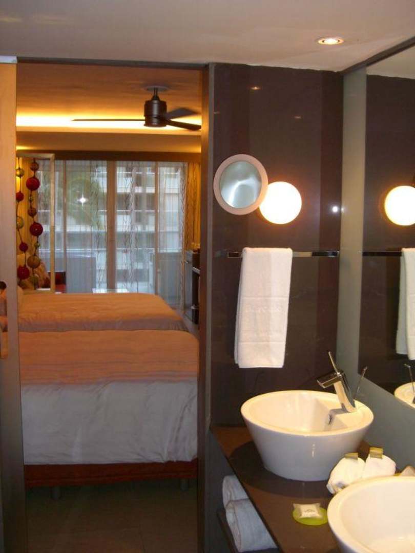 Sicht ins Bad und Zimmer