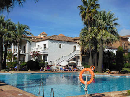 Pool mit Hotelanlage