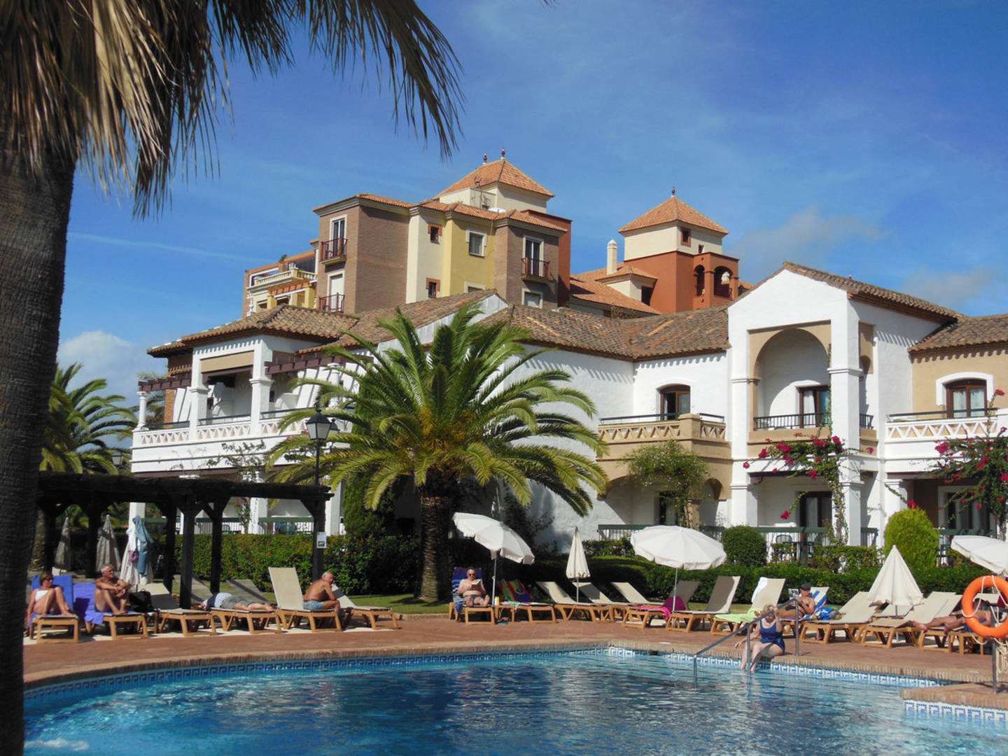 Pool mit Hotelanlage