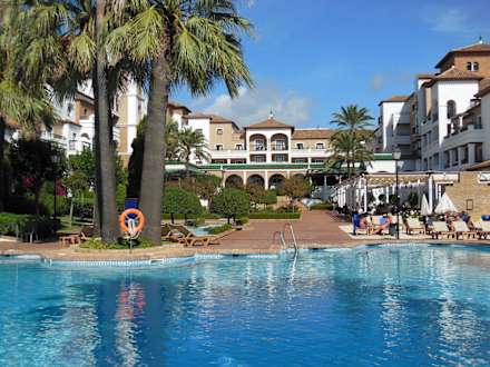 Pool mit Hotelanlage