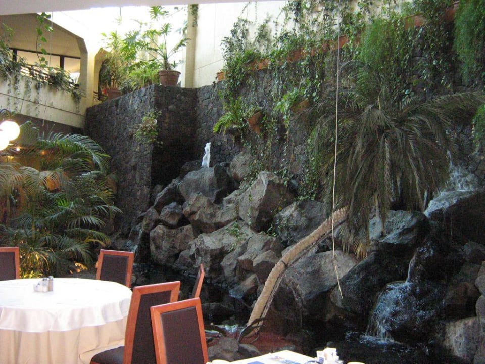 Speisesaal mit kleinen Wasserfall und Pflanzen