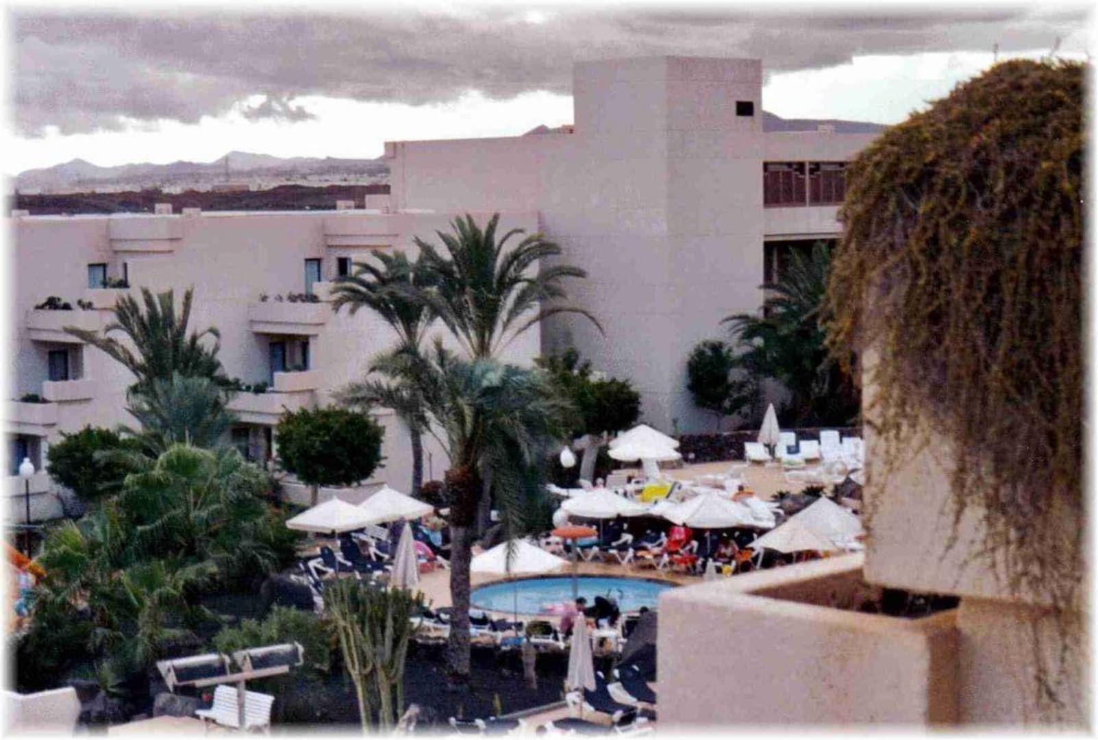 Ausblick vom Zimmer auf den Poolbereich