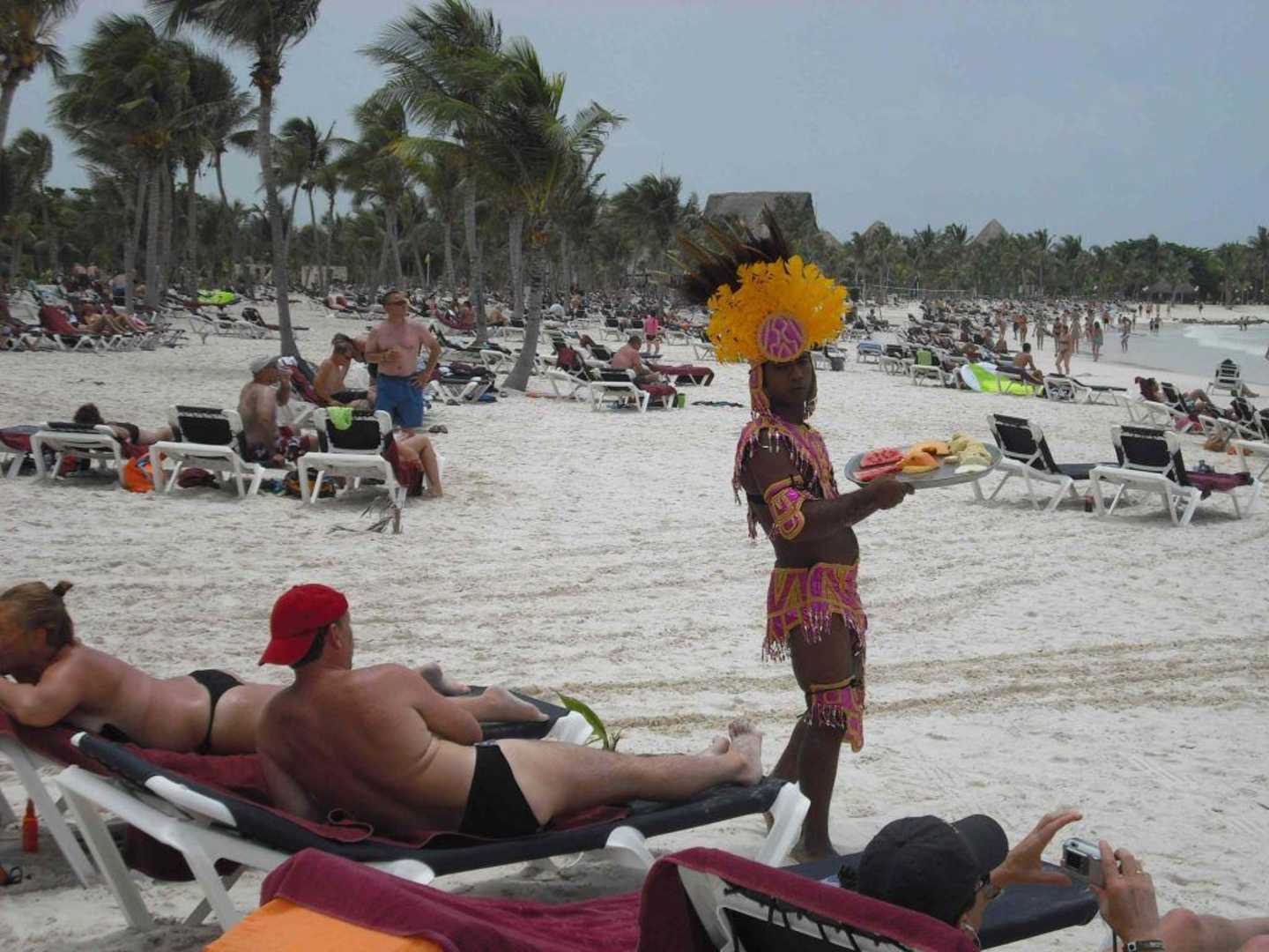 Am Strand gibt es kostenlos Obst, manchmal nett präsentiert.