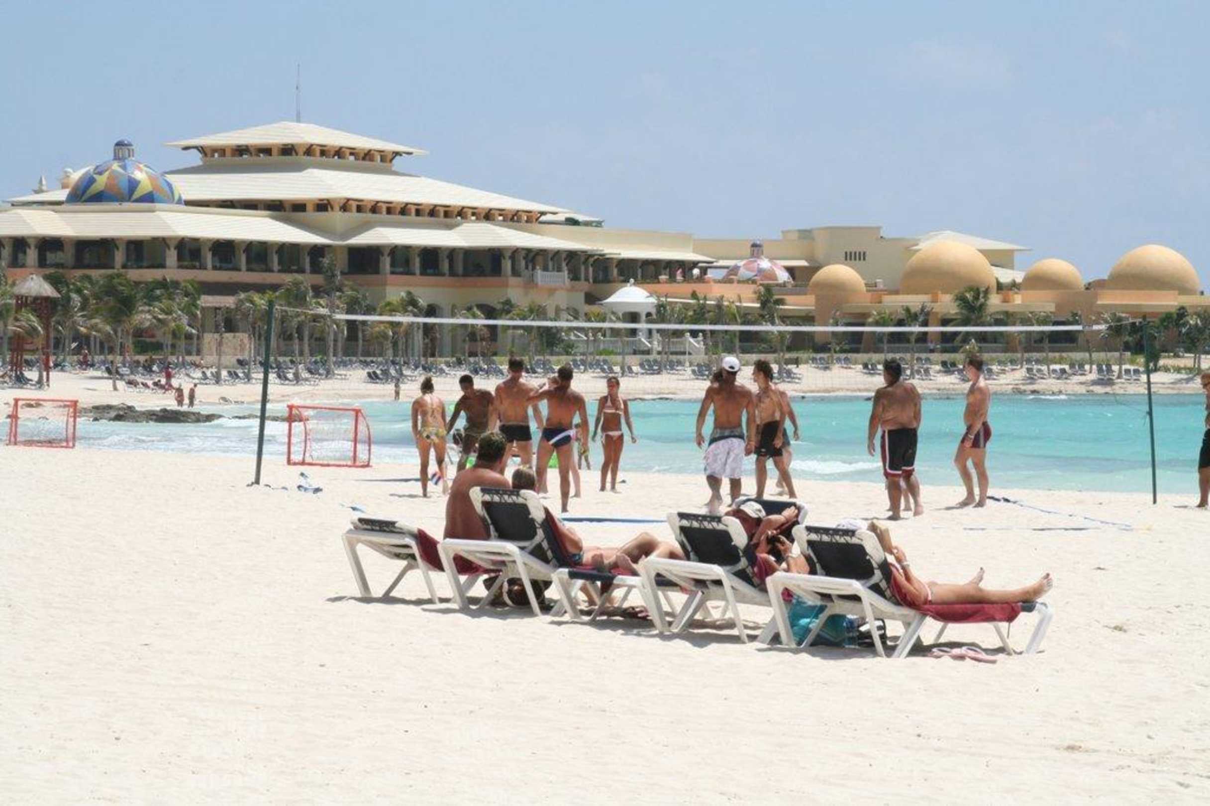 Sicht vom Strand des Schwesterhotels Barcelo Maya Tropical