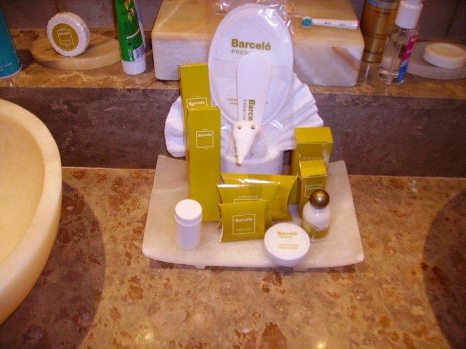 Im riesengroßen Bad der Junior Suite ist alles vorhanden was man braucht.Lest meine Beschreibung.Es wird alles jeden Tag wieder aufgefüllt.
