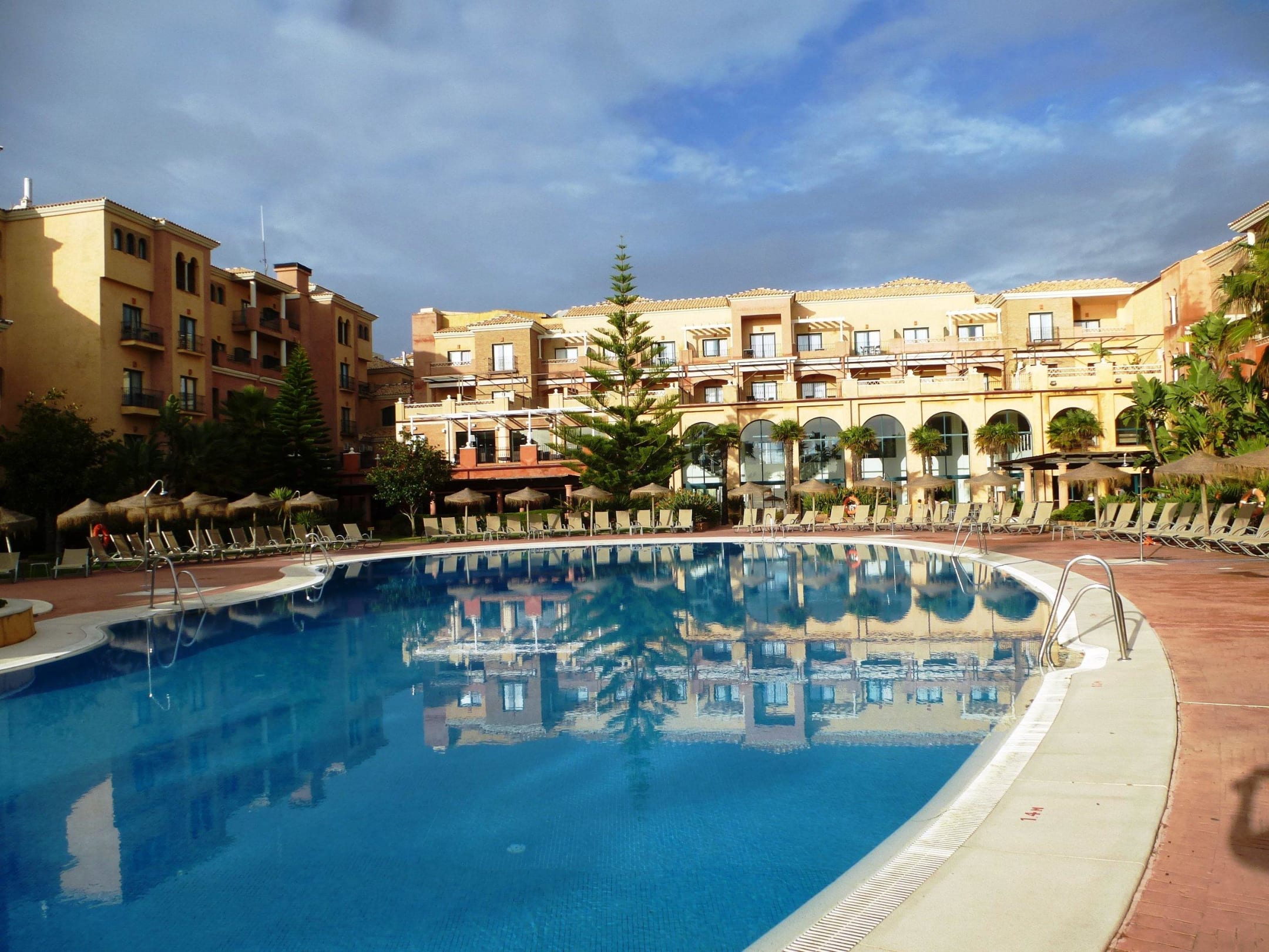 Blick auf den Pool und das Hotel