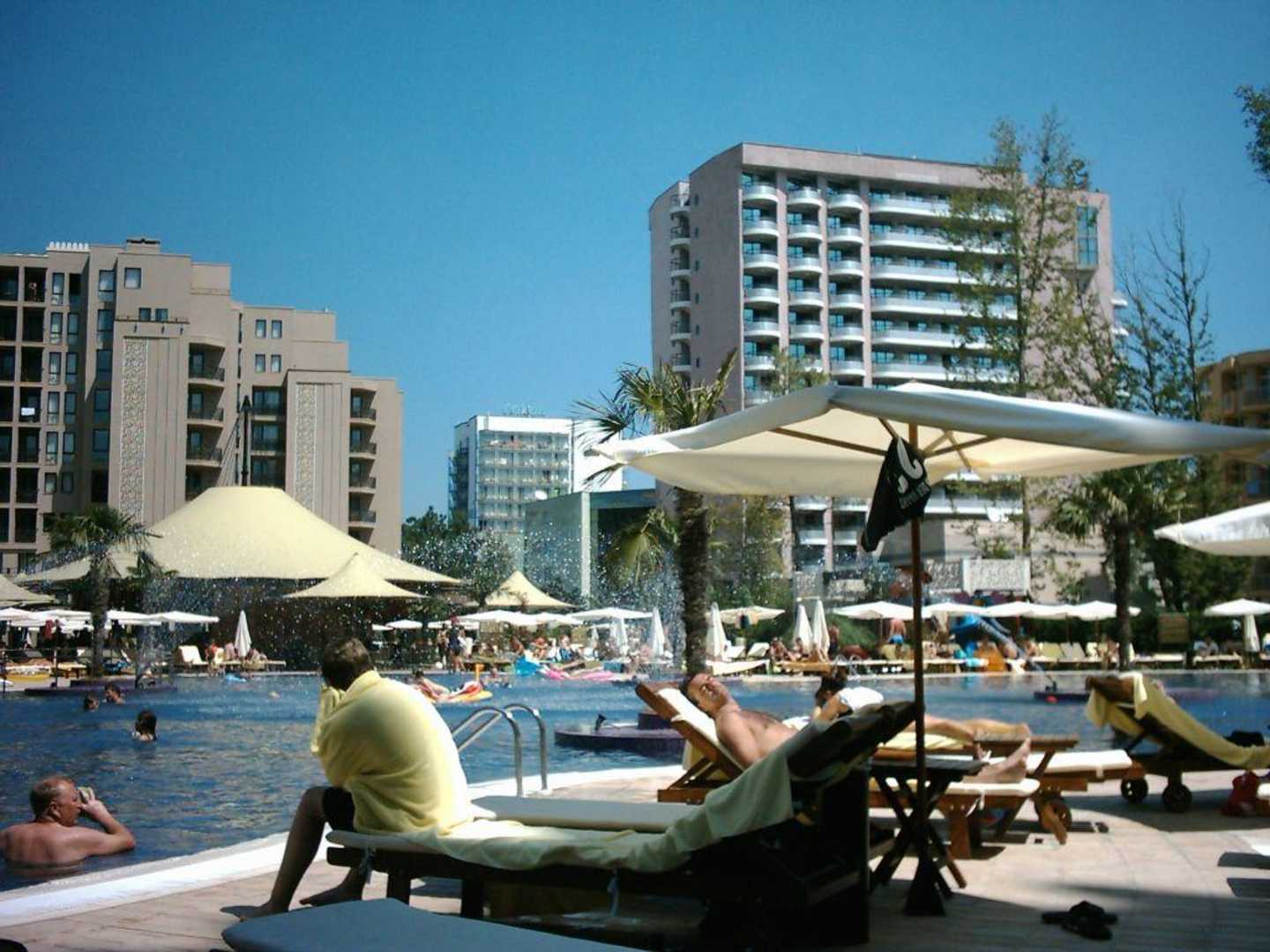 Pool mit Blöcken A-DPool mit den Blöcken A-D. Rechts im Hintergrund das Hotel Grand Hotel Sunny Beach, das direkt vor dem Barcelo steht