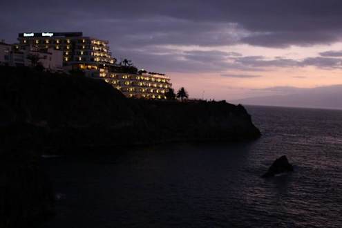 Widok hotelu od strony naturalnego basenu w skałach