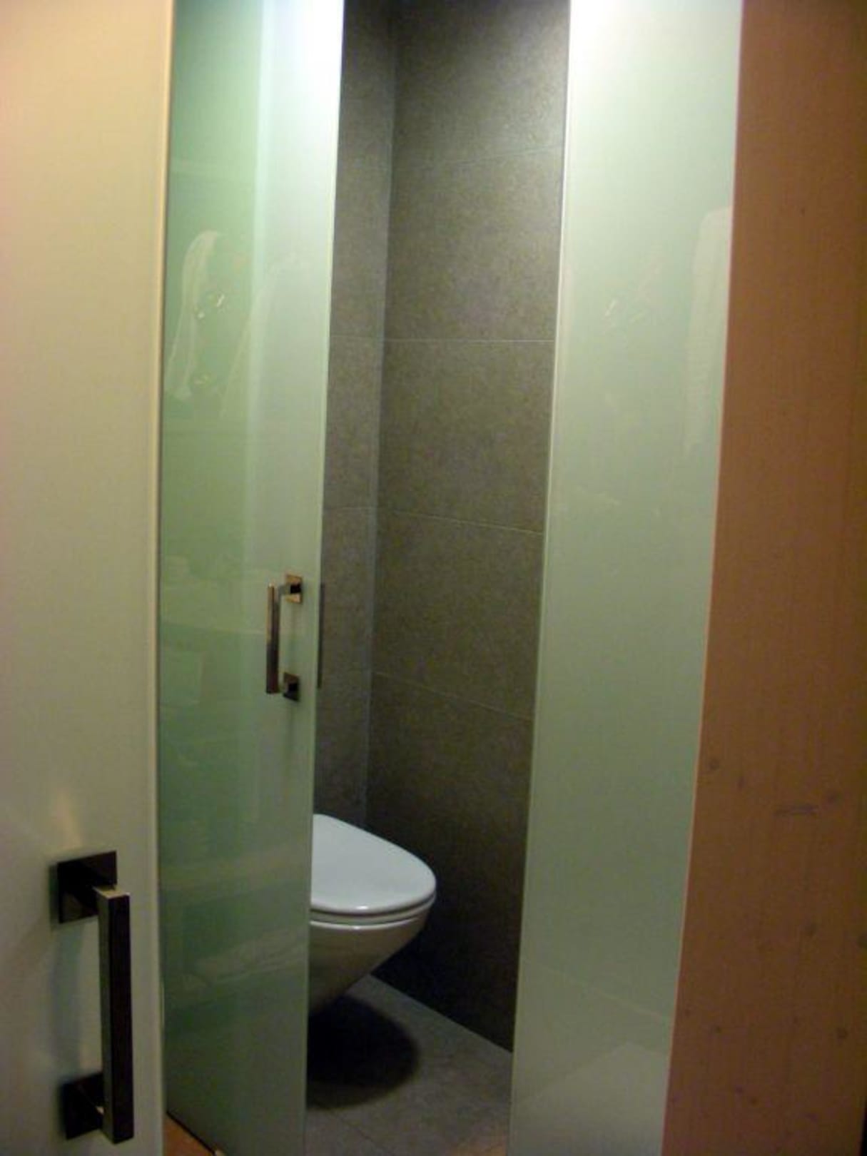 Im "Bad-Würfel" ;-) ist noch eine weitere Schiebetür zu Klo und Bidet (gegenüber einander)