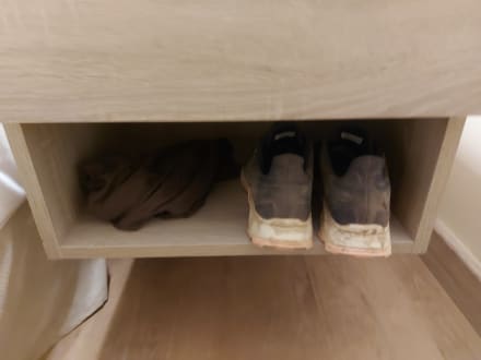 Nachthemd neben Wanderschuhe platziert