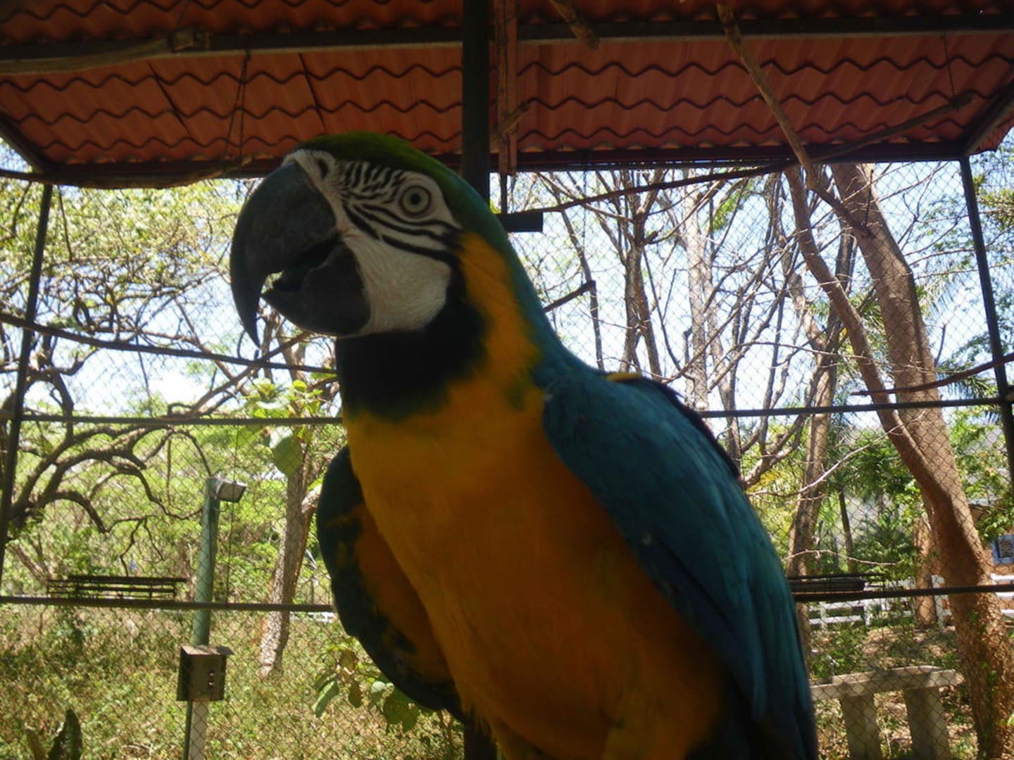 VogelparkEin brasilianischer Papagei wartet auf Gäste.