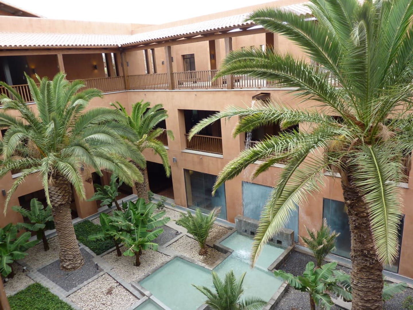 Blick von der Rezeption in den Atriumhof