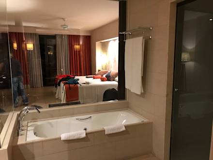 ZimmerBlick vom Sprudelbad ins Zimmer. Die Glaswand kann sich geschlossen werden.