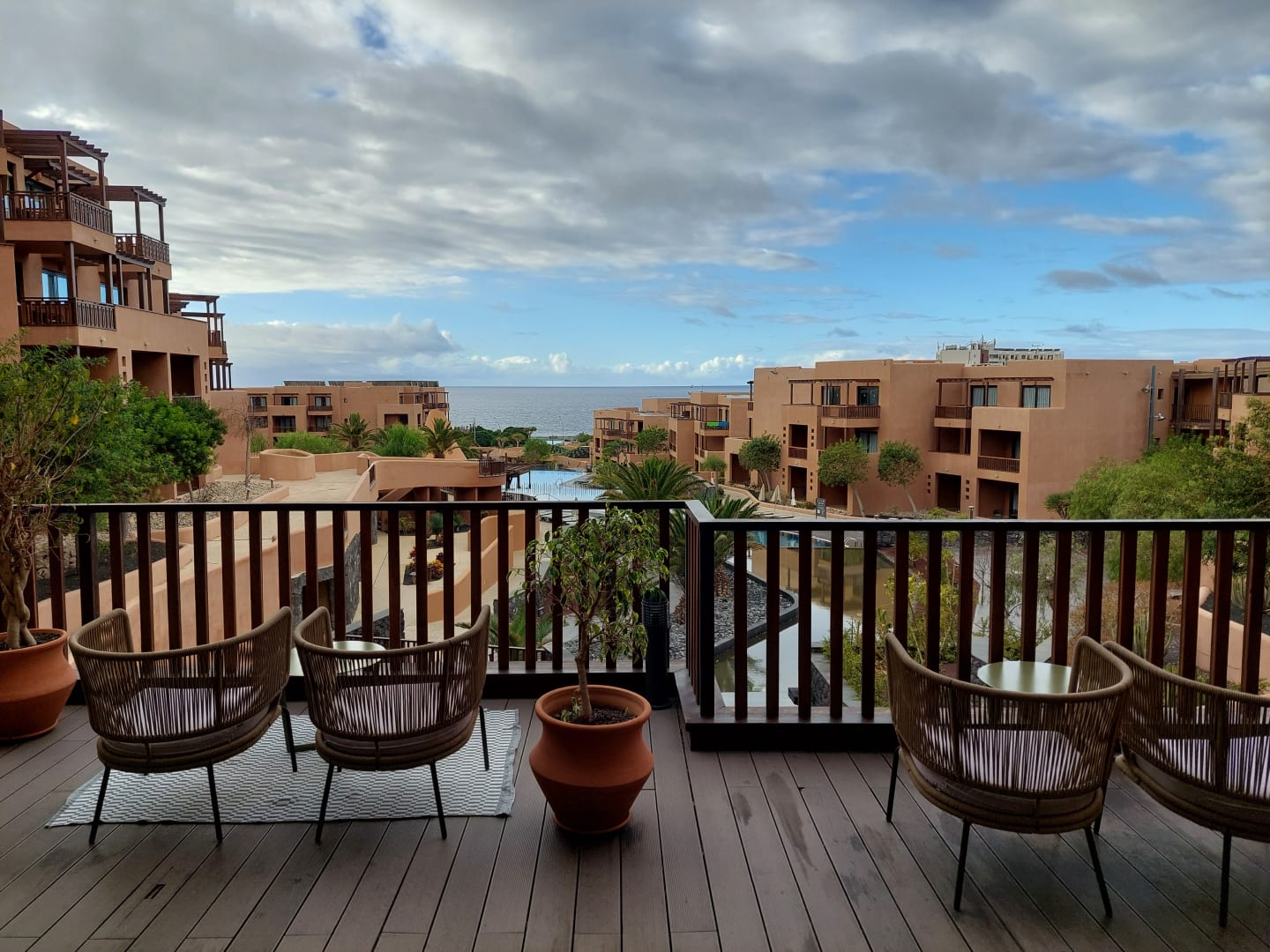 Blick von Terrasse bei der Rezeption auf die Anlage