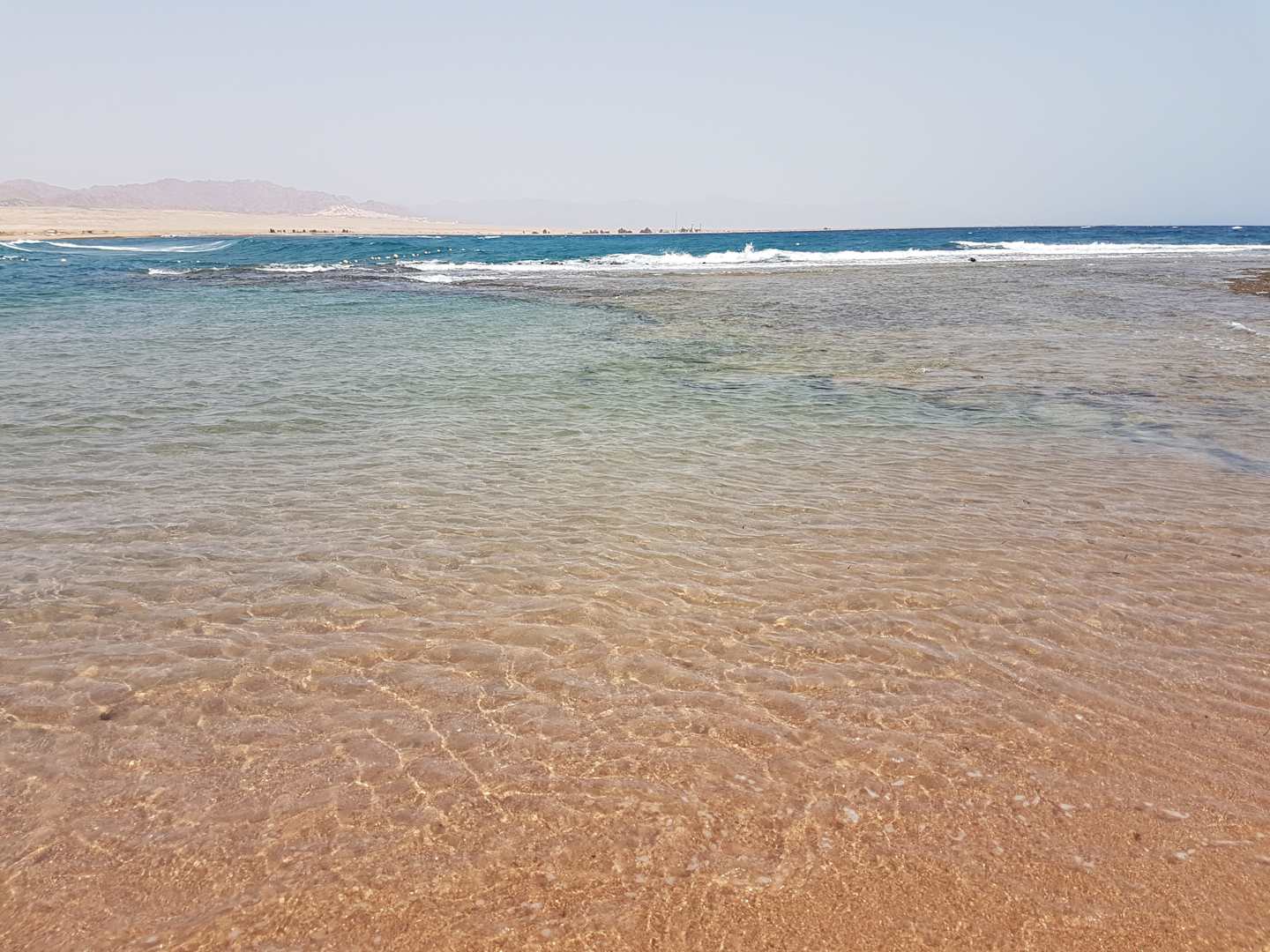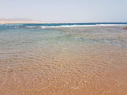 hier rechts das Hausriff und links ist feiner Sand im Meer