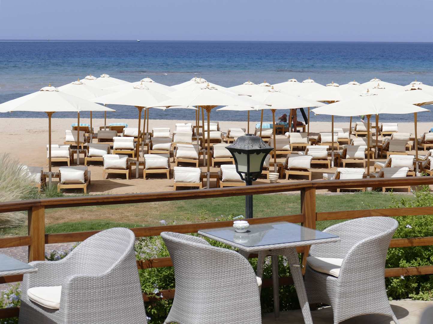 Poolrestaurant mit Blick auf den Strand