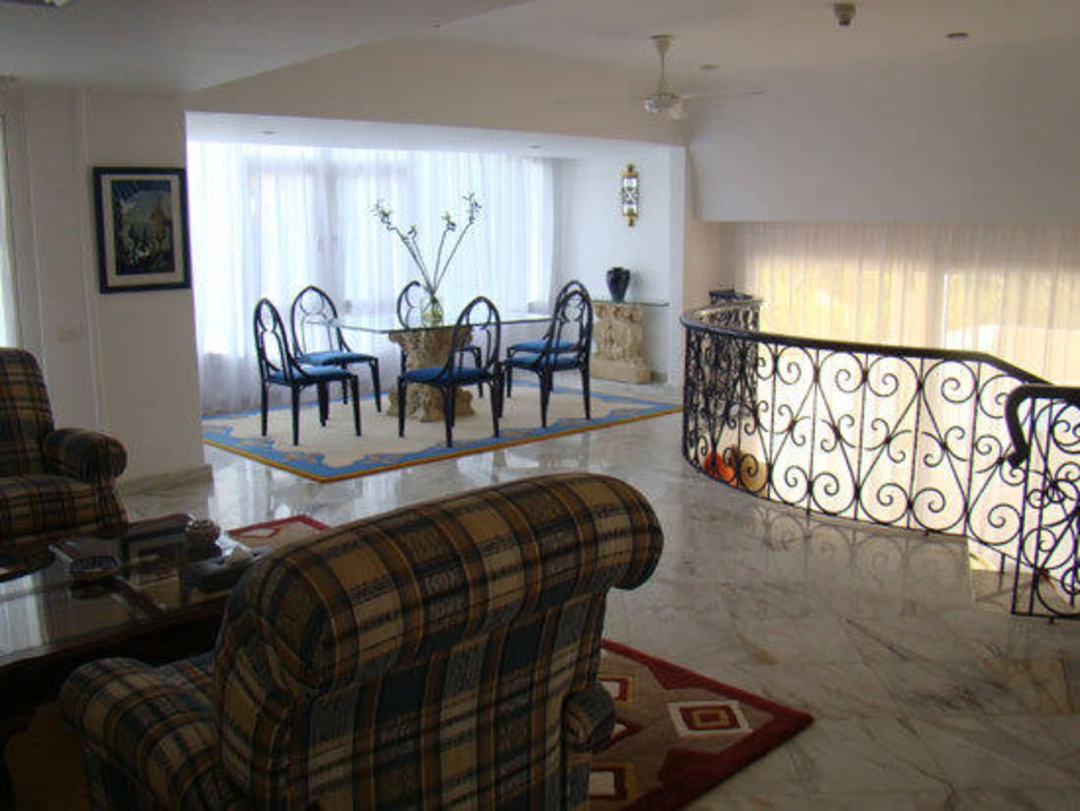 ...Wohn-Essbereich mit Treppe zur Terrasse und Pool