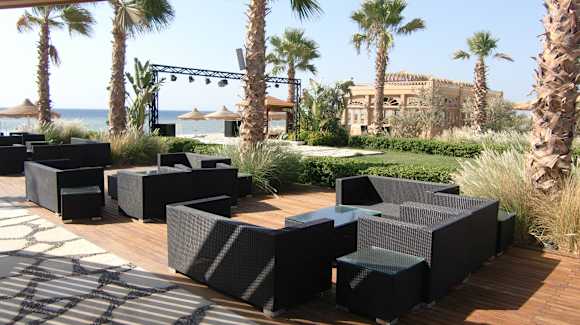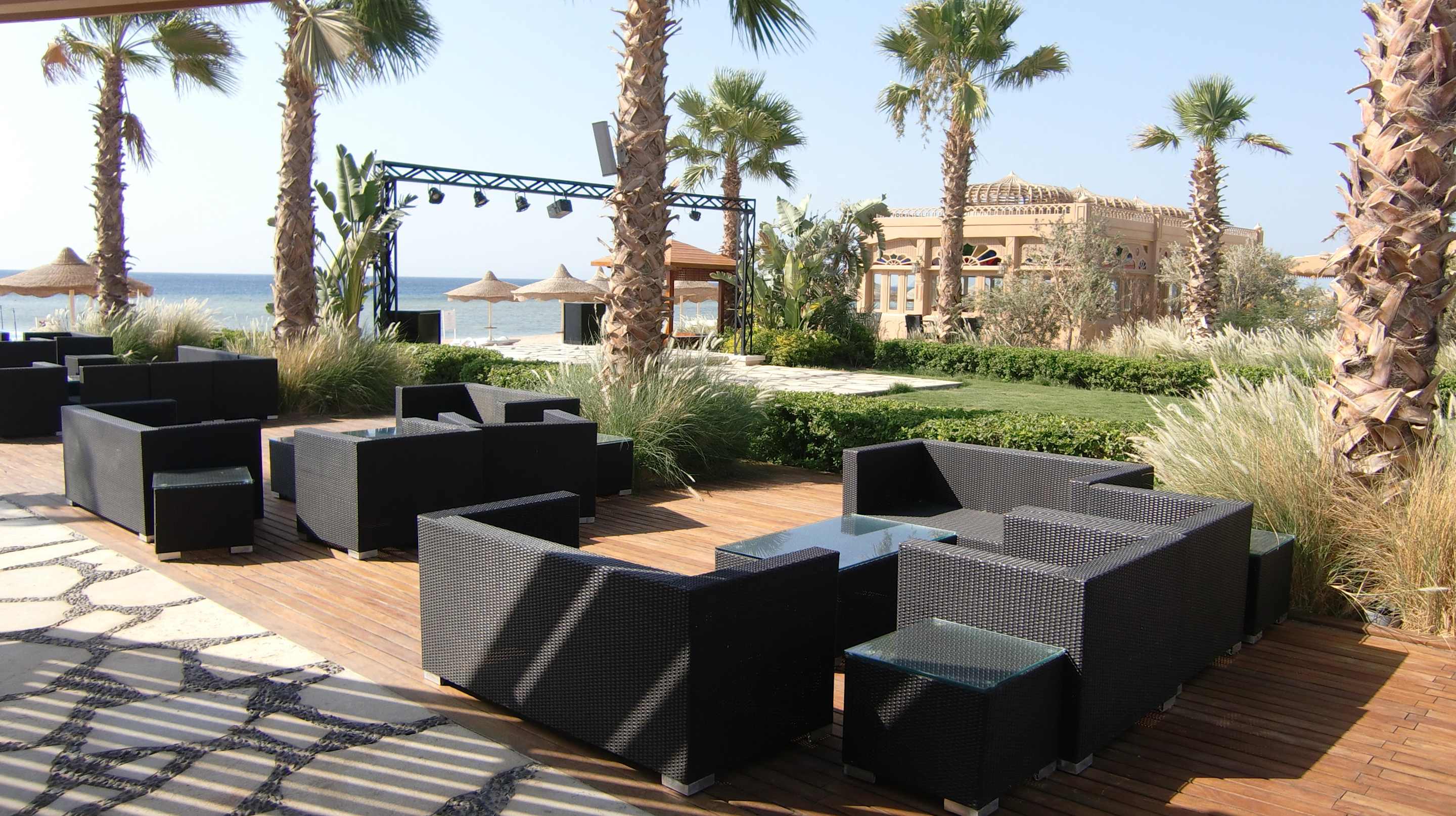 An der Beach Bar im Hintergrund Taj Mahal