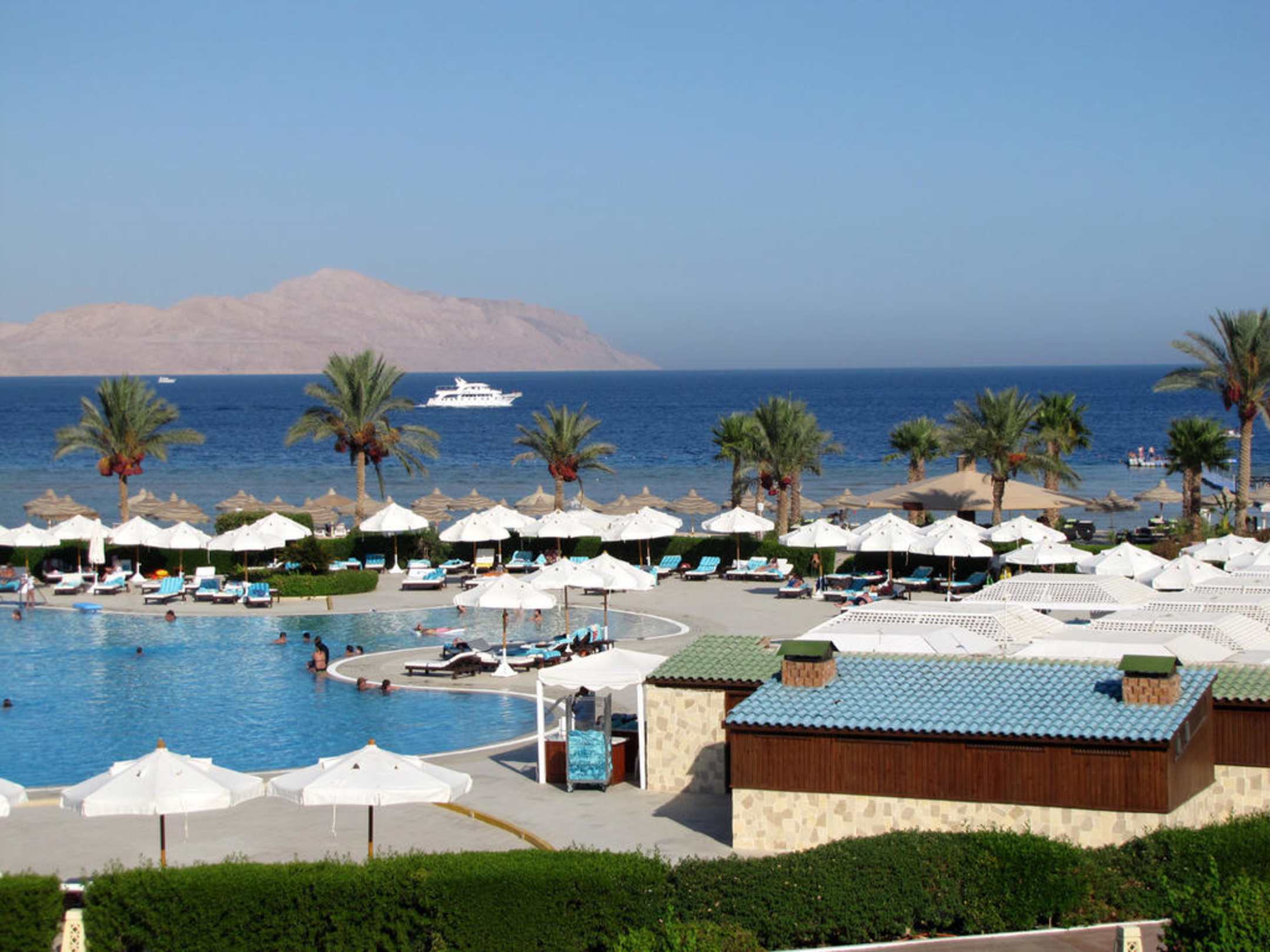Blick auf Pool und Strand