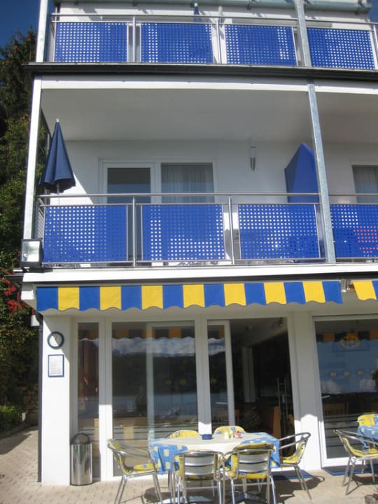 Blick in den Frühstücksraum mit Terrasse