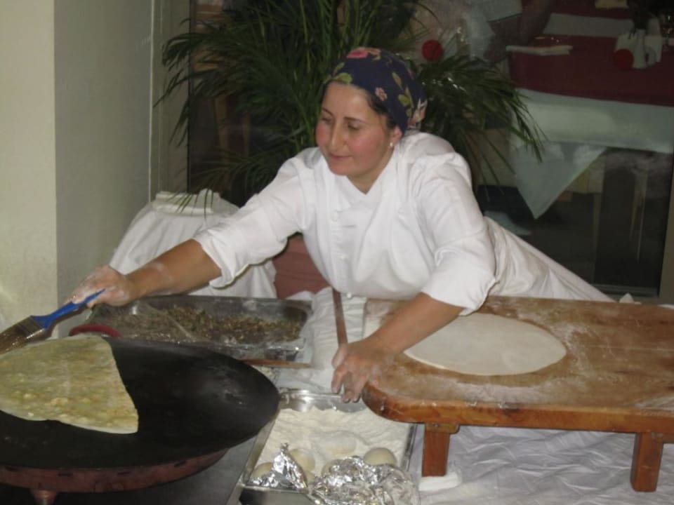 Das meist mit Käse oder Fleisch gefüllte Fladenbrot wurde im Restaurantbereich vor den Augen der Gäste gebacken.