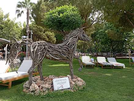 Kunstwerke aus Treibholz, überall in der Anlage