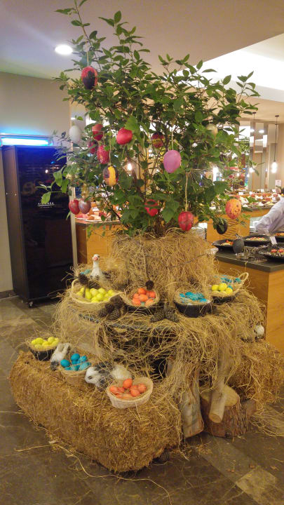 Hauptrestaurant mit Osterschmuck
