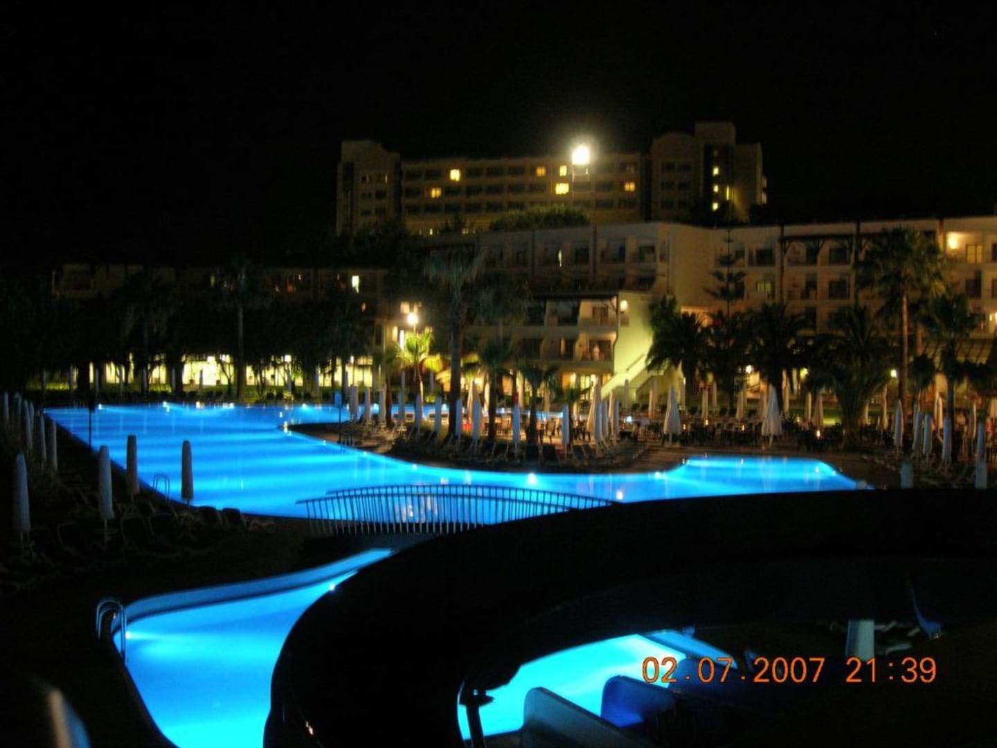 Poolanlage am AbendStimmungsvolles Bild am Abend über die Poolanlage mit Blick auf das Hauptgebäude. (Barut Hotel Hemera, Side, Türkei)