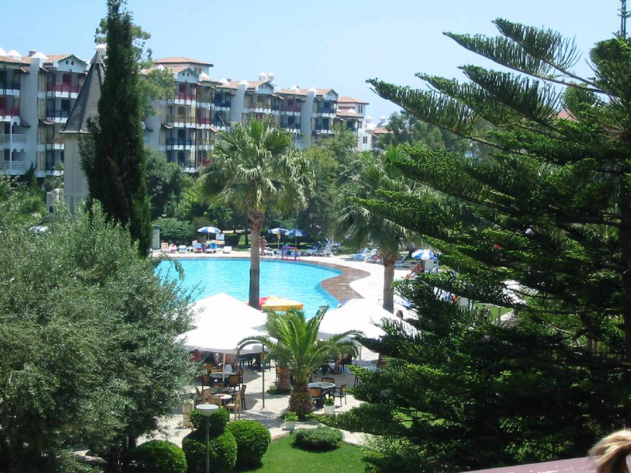 Ausblick von der Terasse auf die Anlage mit Pool- Barut Hemera