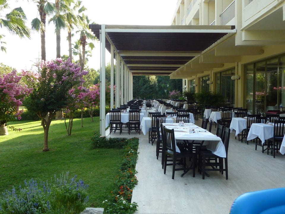 Bei freier Wahl der Tische war es auch möglich draußen zu essen, wovon wir rege Gebrauch gemacht haben. Einfach wunderschön der Blick in die Gartenanlage.